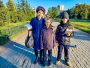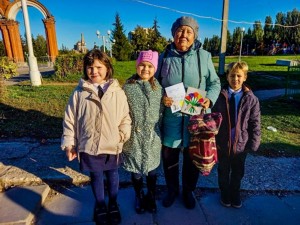 В честь праздника учащиеся нашей школы решили поздравить всех причастных, выйдя на улицы города. Так, ученики 3"А" класса отправились на Соборную площадь и дарили открытки, сделанные своими руками, всем бабушкам и дедушкам, которые повстречались у них на пути.