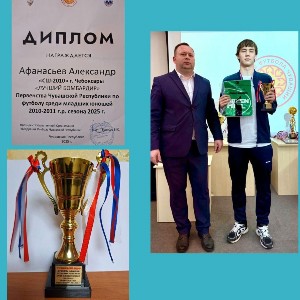 Поздравляем Афанасьева Александра, ученика 9 М класса с успешным окончанием сезона: 1 место среди младших юношей 2010-2011 г.р. в составе команды "СШ-2010" города Чебоксар и 3 место среди старших юношей 2008-2009 г.р. в составе команды "Империя" СШ №1 г.Новочебоксарска, а также с личной наградой Лучший бомбардир Первенства Чувашской Республики сезона 2025 г.